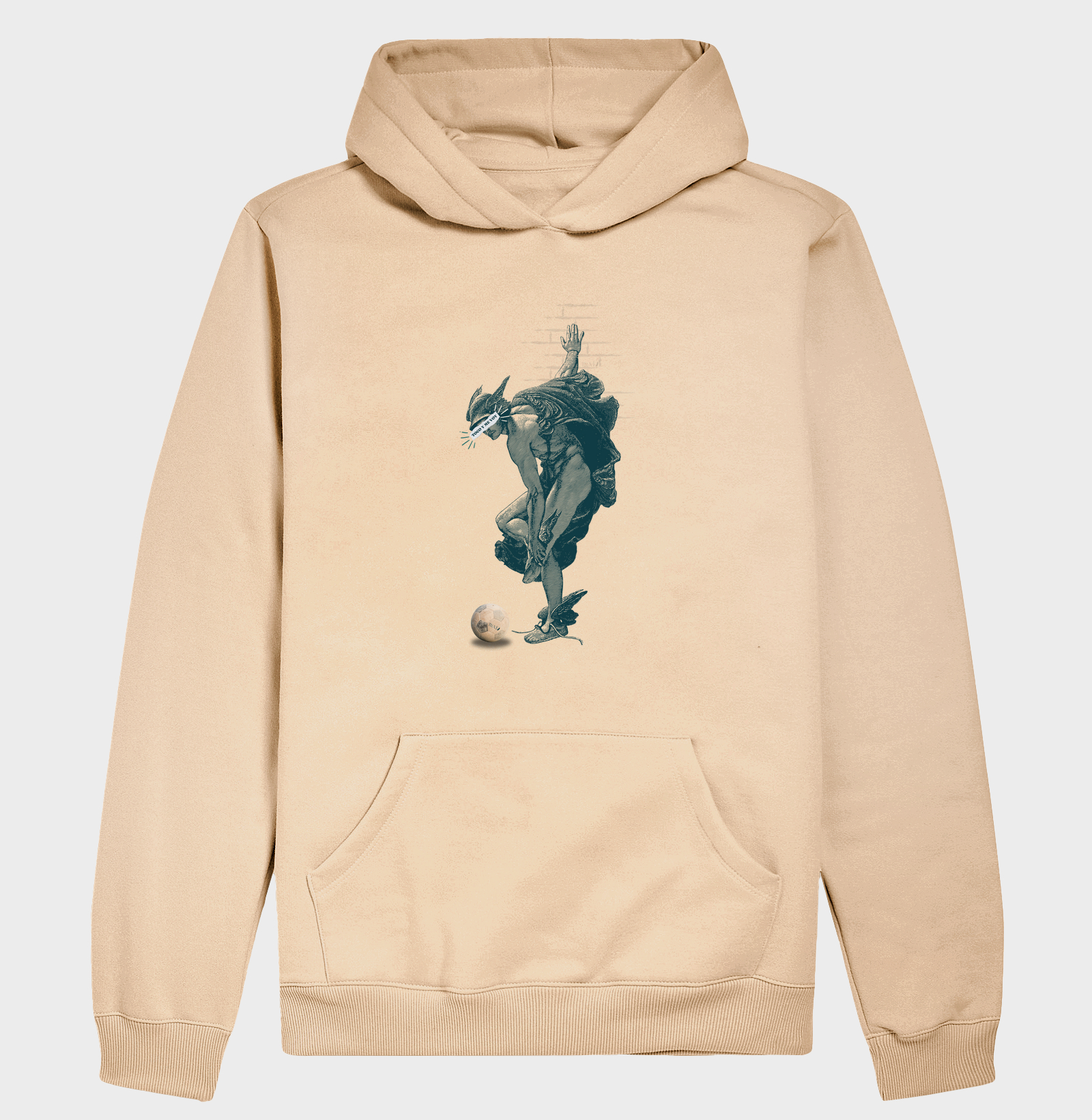 O deus Hermes, conhecido por sua velocidade, ajusta seus famosos sapatos alados – prontos para um jogo divino. Uma partida de futebol o aguarda. "Toco y me voy": nem mesmo um deus resiste a uma boa jogada de futebol. ⚽✨